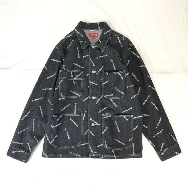 Supreme シュプリーム 2017 春夏 17SS Denim Logo Chore Coat デニム ロゴ チョアコート デニムカバーオール ジャケット ブラックデニム BLACK 黒 ロゴ アウター 羽織 長袖 L 定/30240 メンズ 男性 MENS 紳士 貝塚店 ITV1GWLWKMPI 【中古】 RKR2214G